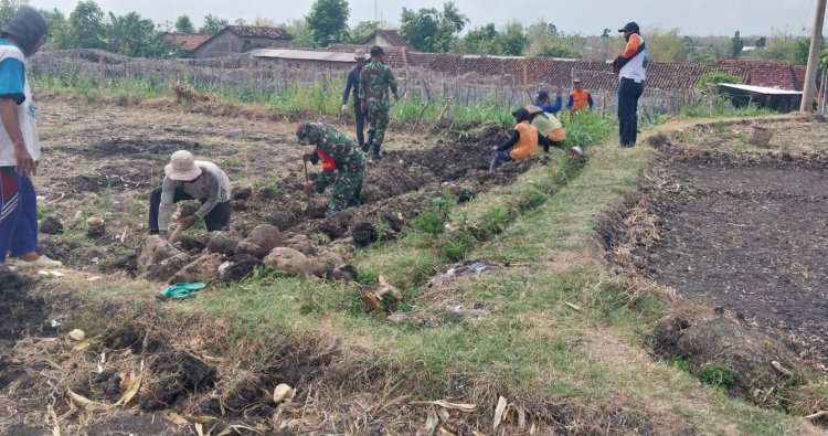 Magetan. - Upaya meningkatkan produktivitas pertanian terus dilakukan oleh berbagai pihak, salah satunya melalui kegiatan gotong royong yang melibatkan TNI bersama masyarakat. Seperti yang dilakukan anggota Koramil 0804-12/Lembeyan Kodim 0804/Magetan yang turun langsung membantu warga sekaligus kelompok tani Desa Lembeyan Kulon, Kecamatan Lembeyan, dalam pembuatan saluran pipanisasi untuk pengairan sawah tadah hujan.(22/04/26)